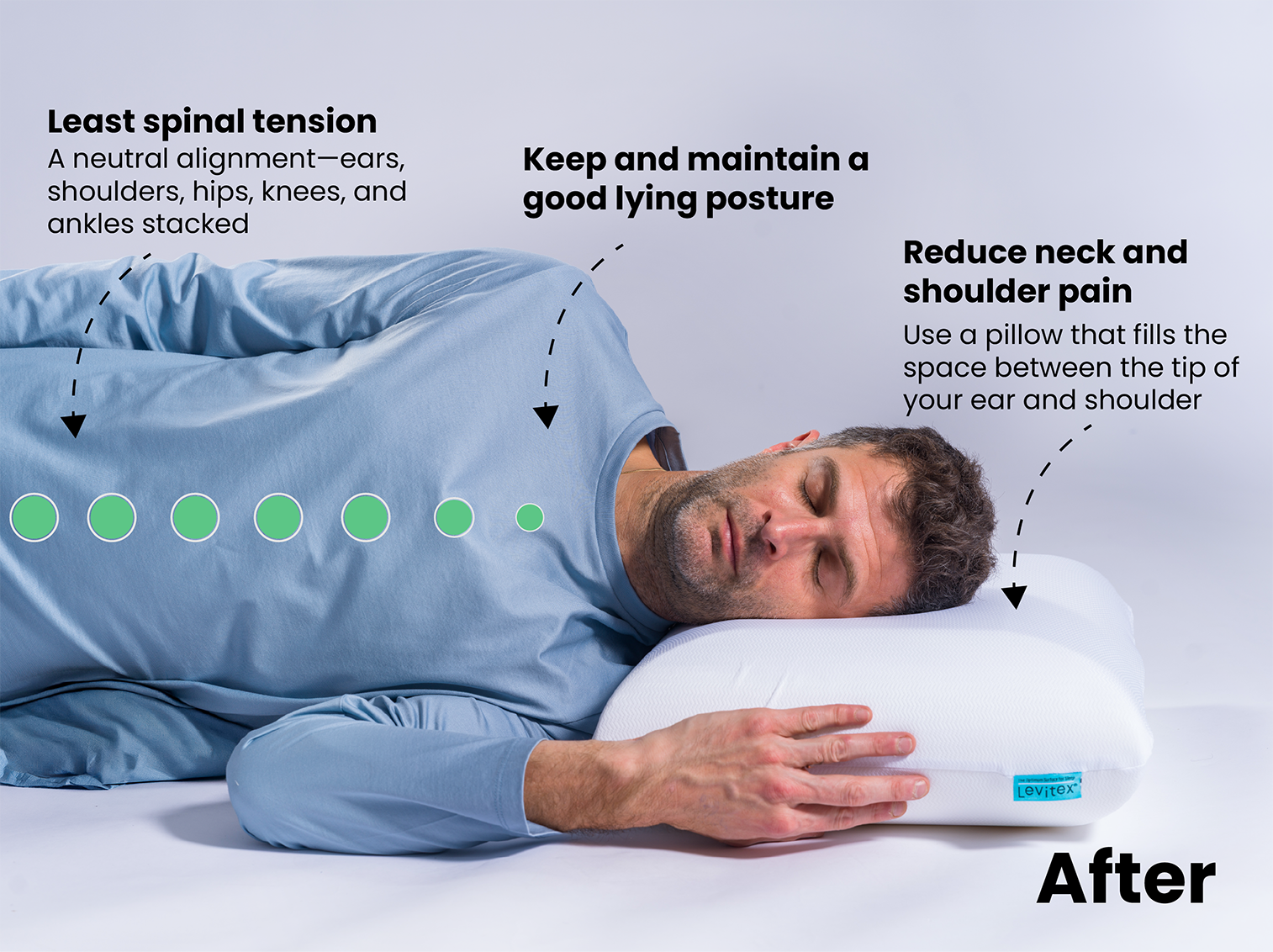 - Transition to sleeping on your side (either one is fine – we recommend alternating).