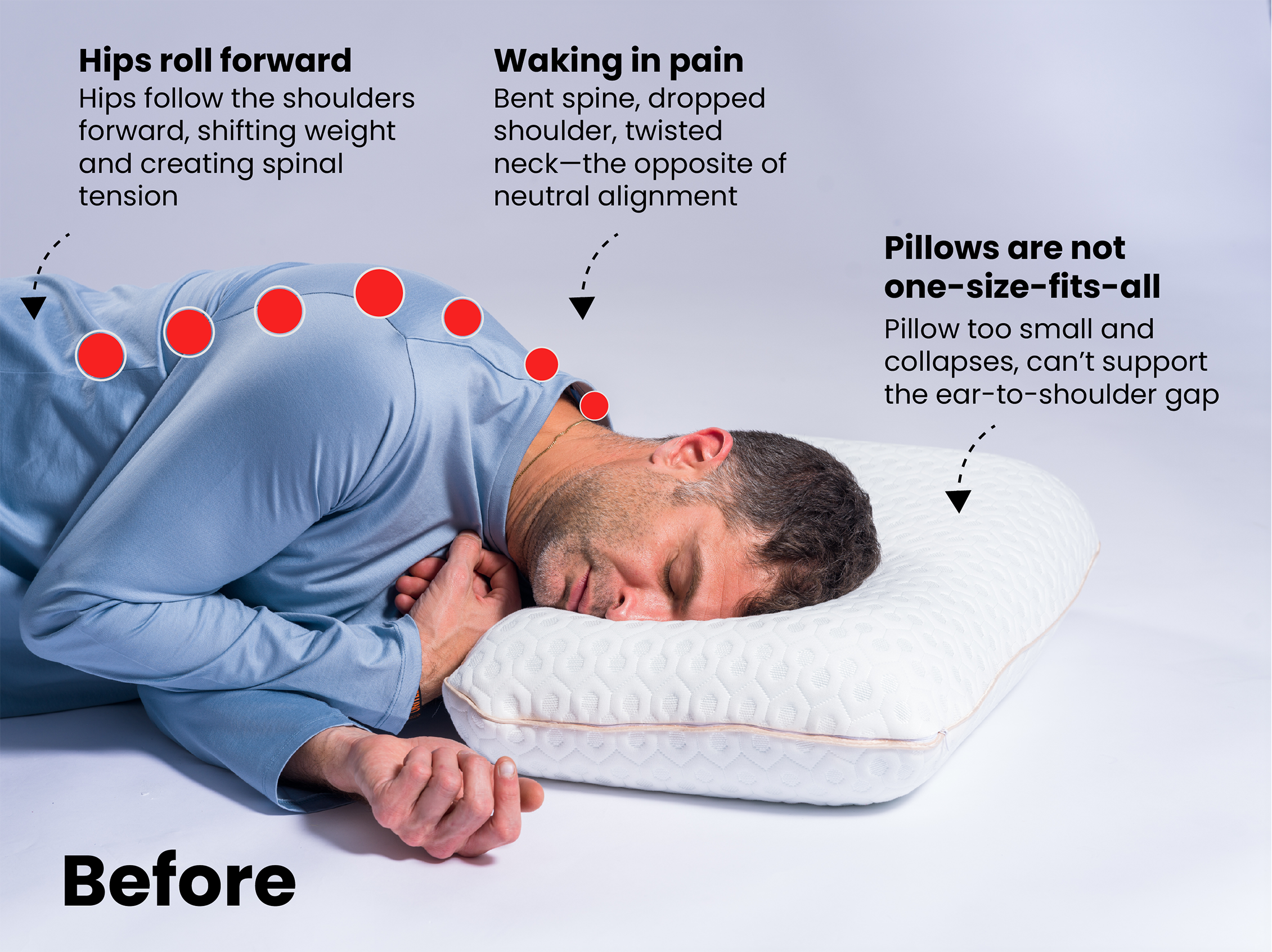 Our sleep posture pillow come in four depths, because pillows are NOT one-size-fits all.