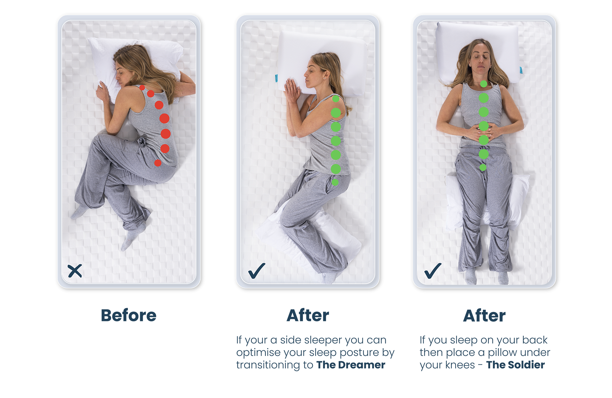 Good sleep posture at night is the secret to a great night’s sleep. It's just how grandma told you to sit at the dinner table, but in bed. You can achieve good sleep posture by becoming a Dreamer (or an optimised back sleeper as an alternative).
